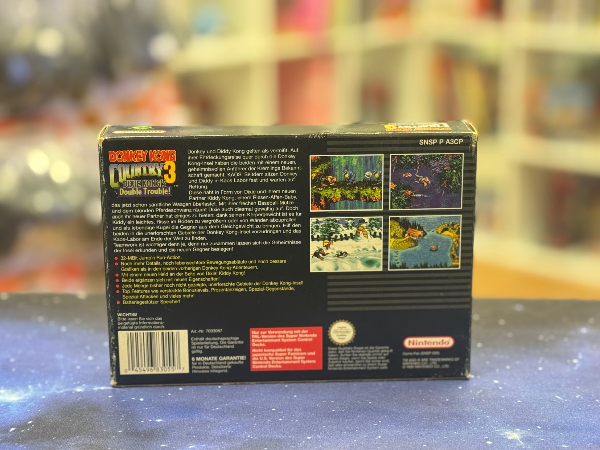 Bestellen Sie jetzt "Donkey Kong Country 3: Dixie Kong‘s Double Trouble OVP mit Inlay" und sichern Sie sich ein Stück Retro-Gaming-Geschichte! Fügen Sie es Ihrer Sammlung hinzu oder freuen Sie sich auf unzählige Stunden Spaß und Herausforderungen. Tauchen Sie ein in die Dschungelwelt und erleben Sie das Abenteuer, das die Herzen von Spielern auf der ganzen Welt erobert hat!
